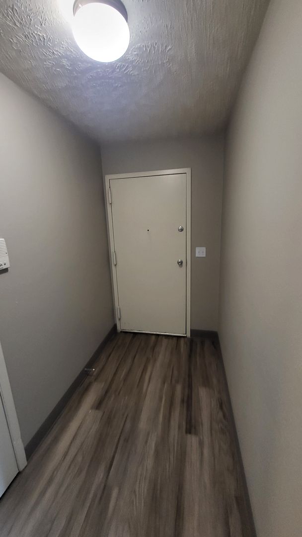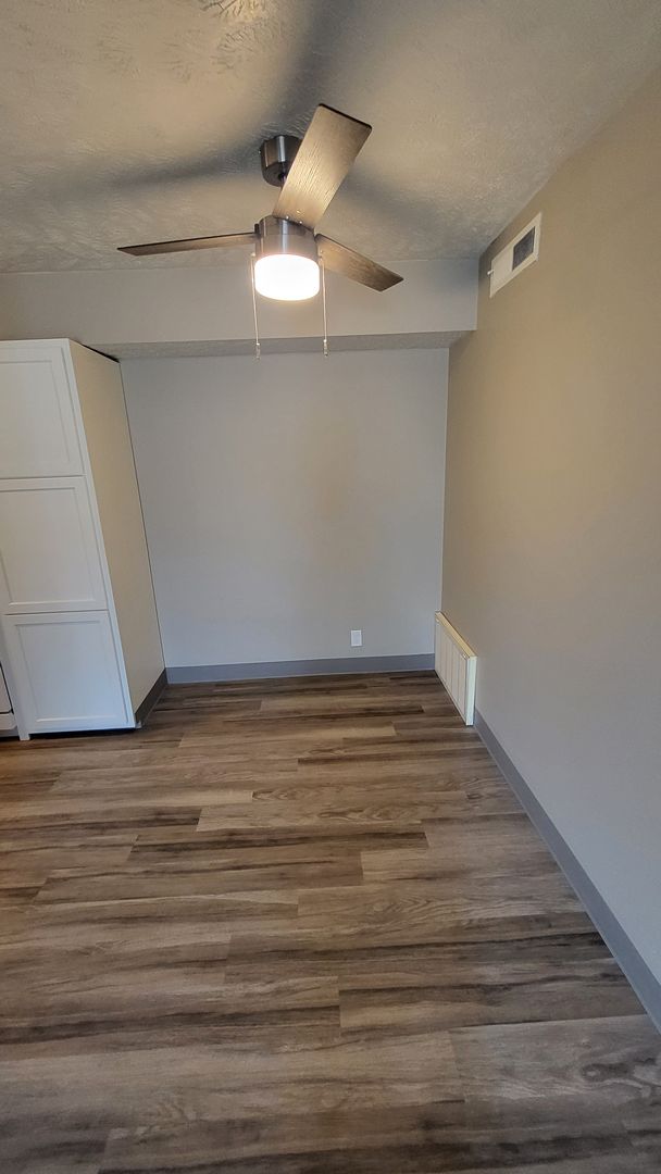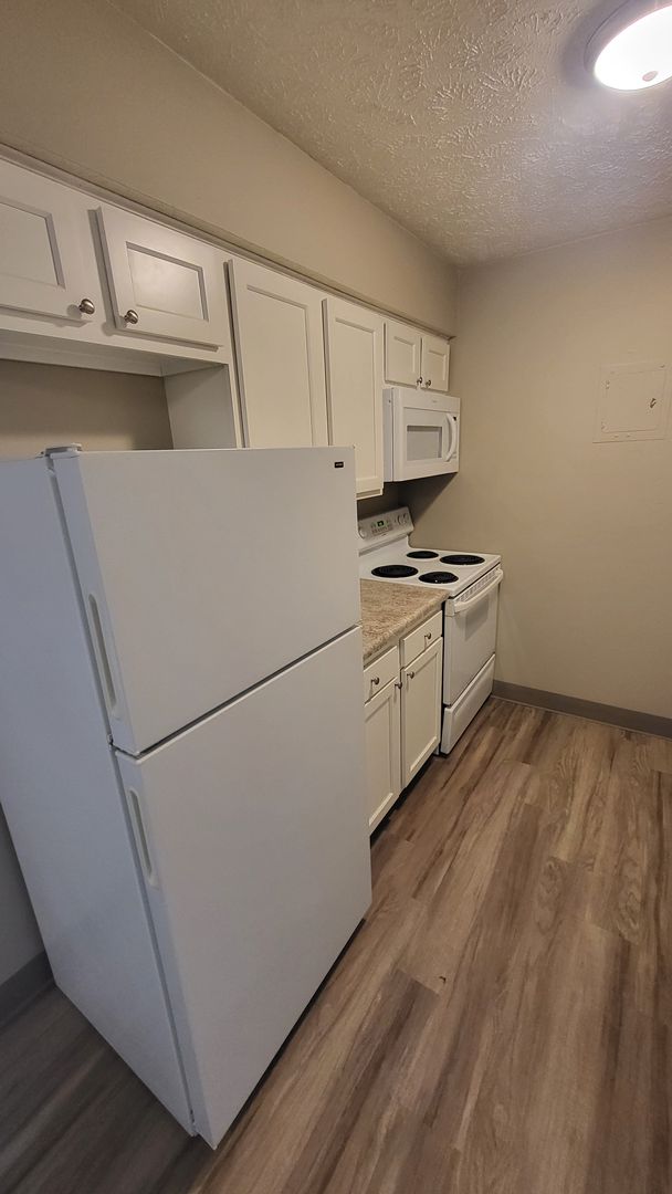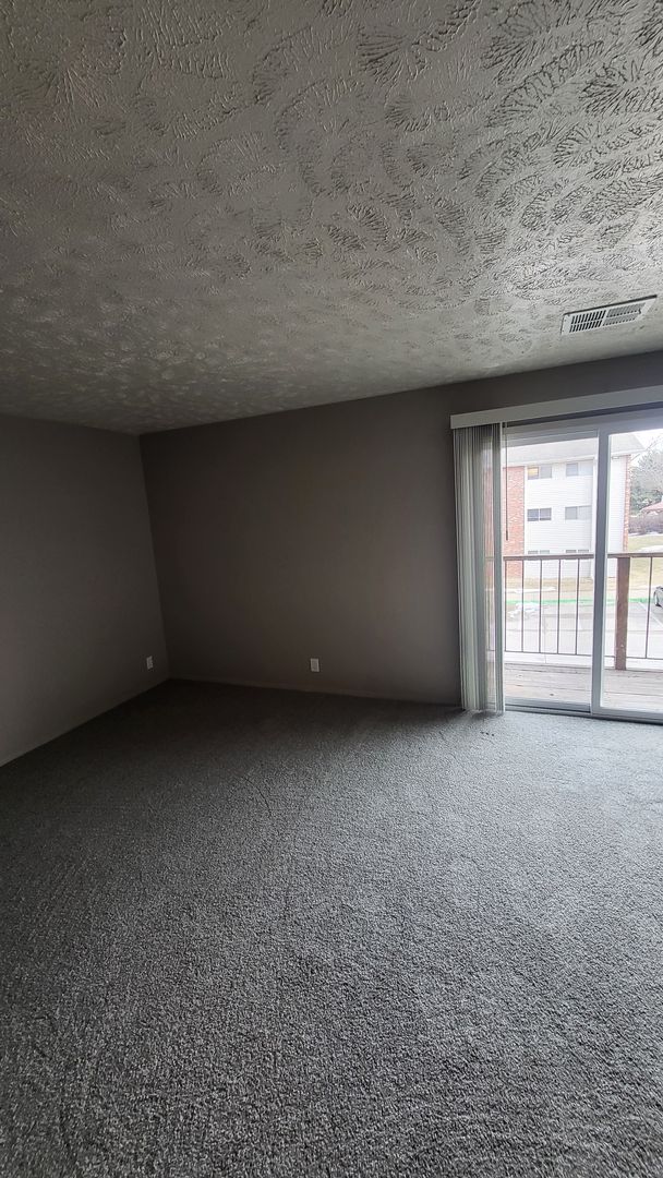 One Bedroom apartment with a balcony facing parking lot.